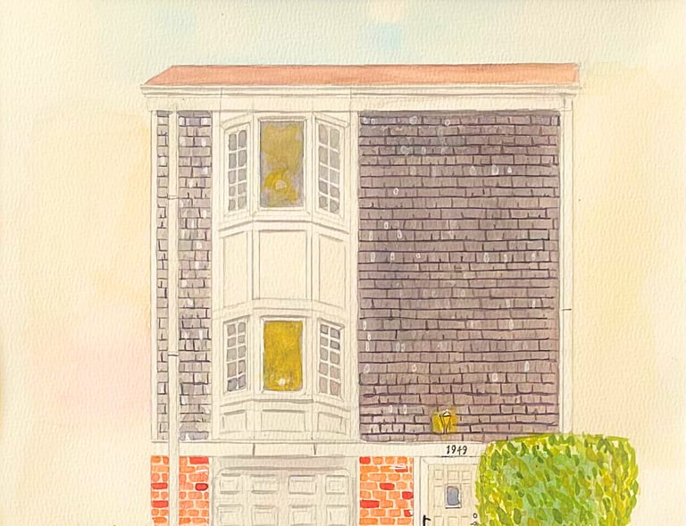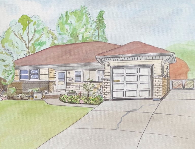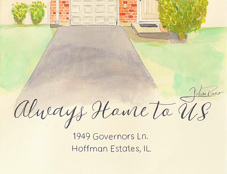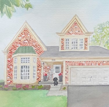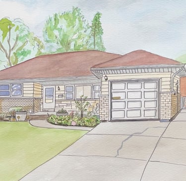 Handcrafted watercolor home portraits and heartfelt oil paintings about fatherhood.